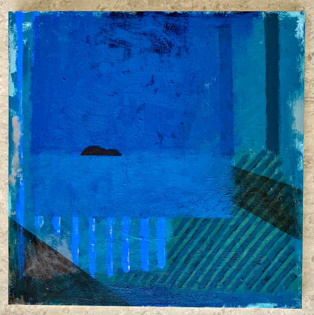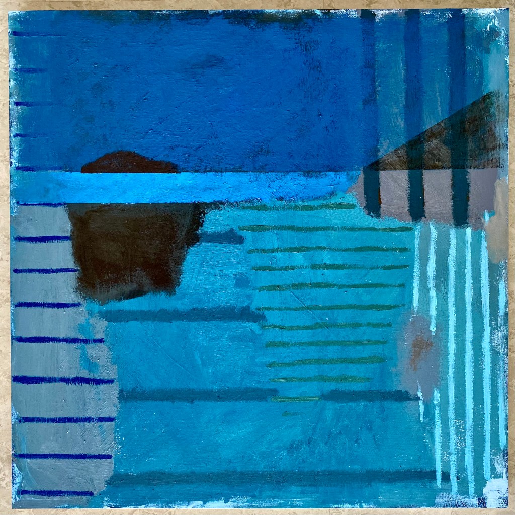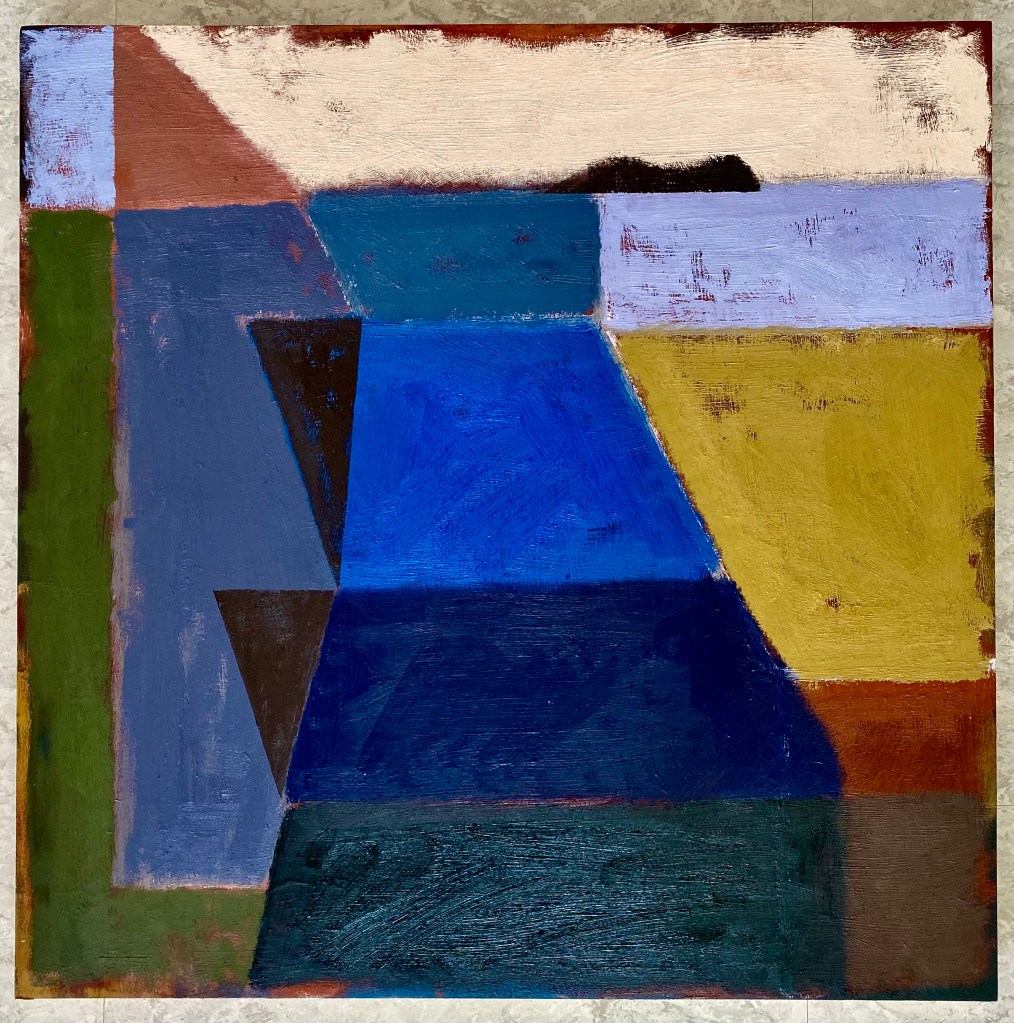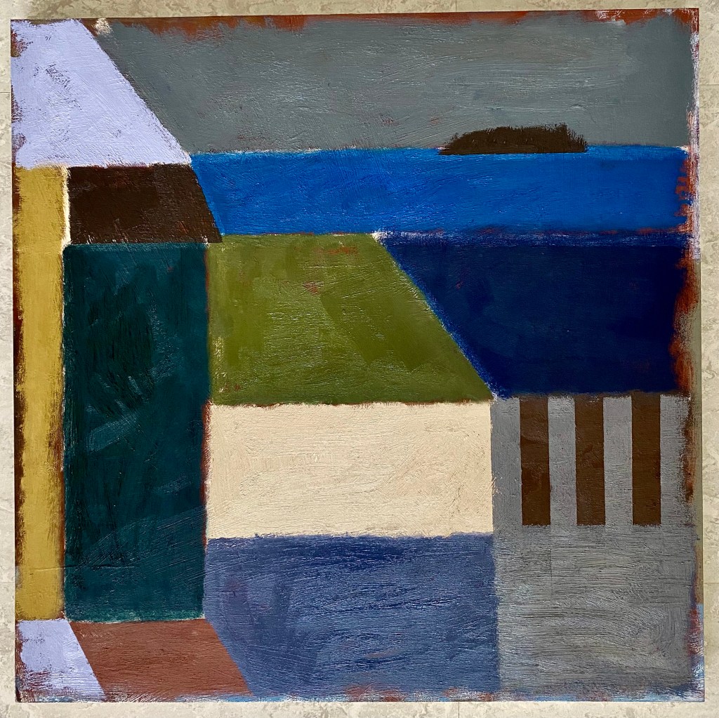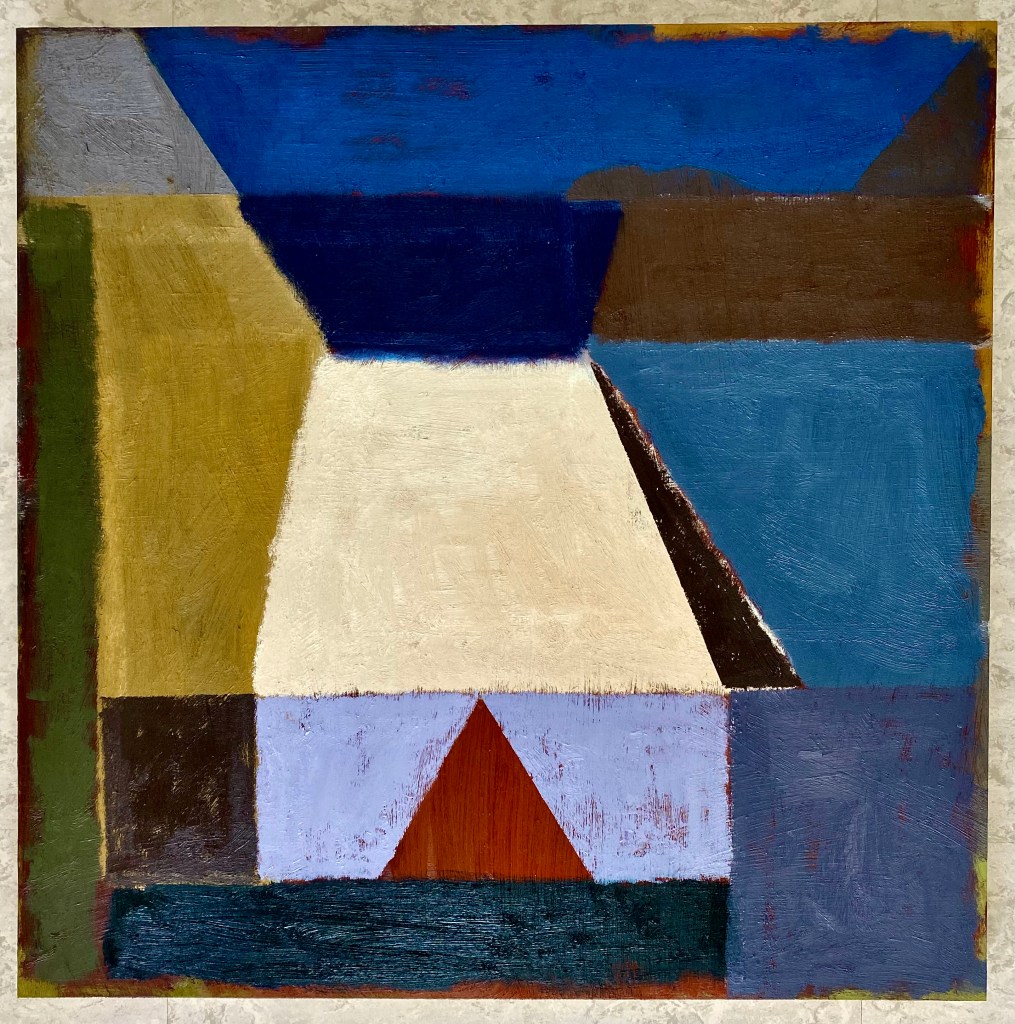 Layering also produces a spatial ambiguity. Planar geometric forms appear stable, yet they are destabilised by the knowledge that they sit upon and are partially permeated by earlier chromatic events. Colour fields are not singular; they are accumulations, sedimented through time, carrying residual warmth or coolness from what lies beneath. The horizon-like divisions and architectural blocks become less about depicting place and more about testing how depth can be generated through sheer material accretion rather than illusionistic perspective.