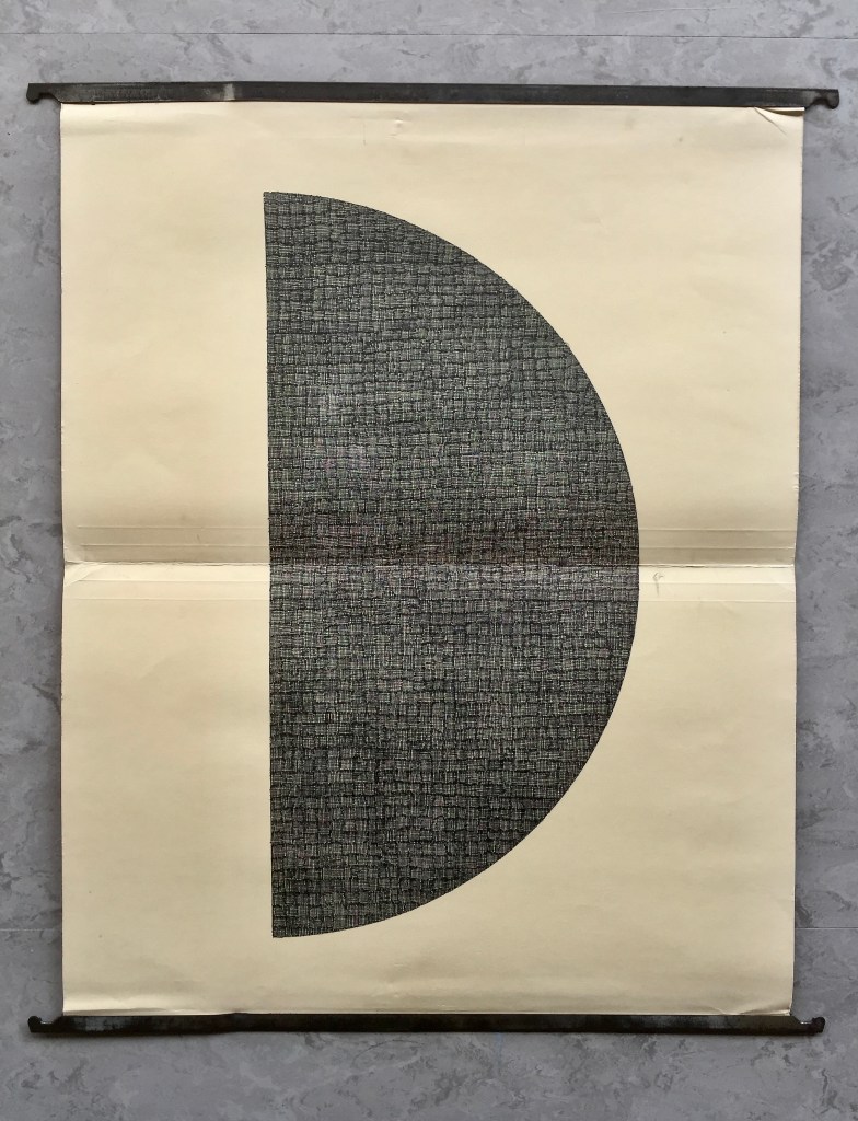 Ink is applied to these surfaces with a deliberate hand—patterned, hatched and meditative. The markings do not replace content, but reframe the void. They suggest internal landscapes, structural decay, or the visual language of failed communication. What emerges is not a narrative but an atmosphere—an abstracted impression of quiet loss, of utility faded into obsolescence.